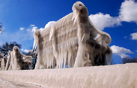 2月17日希臘北部一個(gè)小城,戶外的長凳被冰覆蓋。