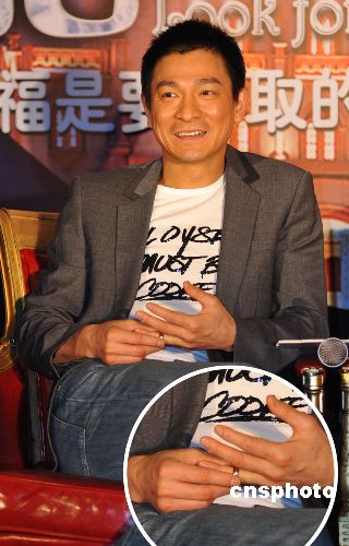 1月13日,由華誼兄弟出品、劉偉強(qiáng)執(zhí)導(dǎo)的浪漫愛(ài)情大片《游龍戲鳳》舉行官網(wǎng)啟動(dòng)儀式。劉德華出席活動(dòng)時(shí)左手無(wú)名指驚現(xiàn)環(huán)形戒指,他在接受訪問(wèn)時(shí)還不停的玩撫戒指,多次摘掉又戴上。中新社發(fā) 李學(xué)仕 攝