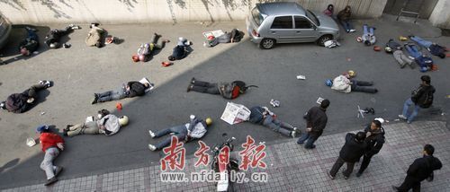 該團(tuán)伙十分猖獗,警方負(fù)責(zé)人說:“警方多次接到群眾舉報(bào),經(jīng)過一周多的預(yù)伏和拍攝,發(fā)現(xiàn)這個(gè)扒搶團(tuán)伙約有20人,假扮成摩的‘搭客佬’,盤踞在出站口處扒搶乘客,偷竊不成就搶!”
