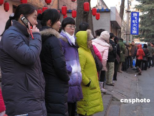 1月15日晨,北京西城區(qū)百萬莊南街,一飛機票火車票銷售點門前,欲購票的群眾在嚴寒中已排起長龍等待開門營業(yè)。春節(jié)前夕,假期返鄉(xiāng)回家過年客流出現高峰,最為緊俏的火車票一票難求。中新社發(fā) 鄒憲 攝