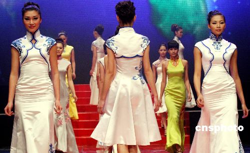 圖為冠軍名模在盛妝亞洲晚會上展示奧運禮服。中新社發(fā) 錢興強 攝