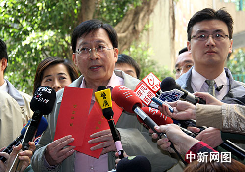 1月18日上午,備受全臺(tái)和外界關(guān)注的消費(fèi)券開始在臺(tái)灣各發(fā)放所發(fā)放。圖為今天上午11時(shí),臺(tái)灣行政部門負(fù)責(zé)人劉兆玄來到設(shè)于臺(tái)北市金華中學(xué)的消費(fèi)券發(fā)放所領(lǐng)取消費(fèi)券。劉兆玄隨后發(fā)表講話呼吁臺(tái)灣民眾積極使用消費(fèi)券擴(kuò)大消費(fèi),促進(jìn)內(nèi)需。陳立宇 攝