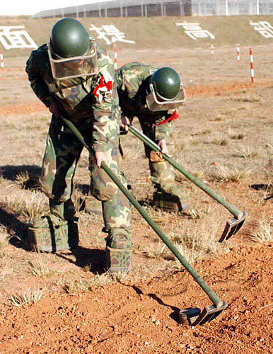 多功能掃雷耙是我掃雷一線人員在實地掃雷過程中發(fā)明的。其發(fā)明者從豬八戒的釘耙開始琢磨:地雷通常采用壓發(fā)裝置起爆,達到殺傷目的,而從側面受力則不會引爆。如果有類似的釘耙,就能把地雷鉤出!岸喙δ軖呃装摇本褪腔诖税l(fā)明的。該掃雷耙看似簡單,但它具有排雷簡單,實用,輕便,制造成本低等特點。