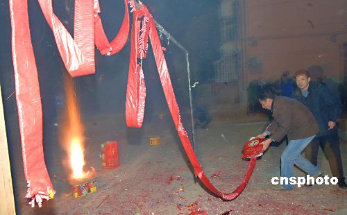 1月26日中國農(nóng)歷新春到來之時(shí),北京市民燃放煙花爆竹,度過不眠之夜,爆竹聲聲過春節(jié)。中新社發(fā) 鄒憲 攝