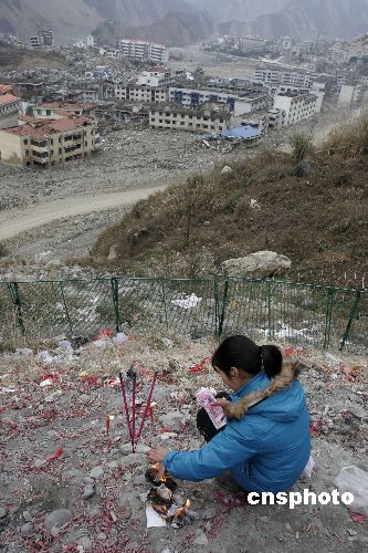 圖:北川遇難者家屬除夕故里悼亡靈