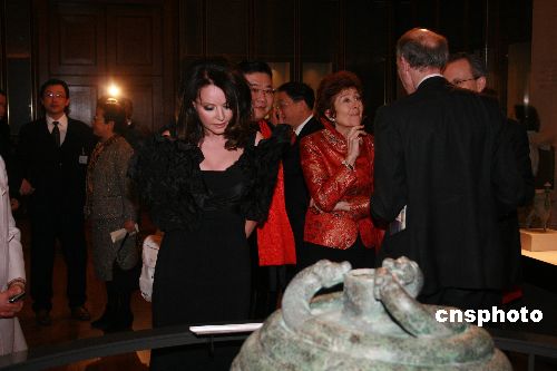 圖為布萊曼(左)在開(kāi)幕式后參觀在大英博物館舉辦的“中國(guó)青銅玉器展”。