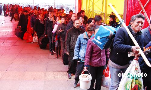 大批返程農(nóng)民工正在九江火車站排隊進(jìn)站。