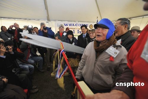 現(xiàn)年93歲廣東移民朱秋樹,1932年曾被羈留于此6個(gè)月,作為歷史見證人參加了剪彩儀式。