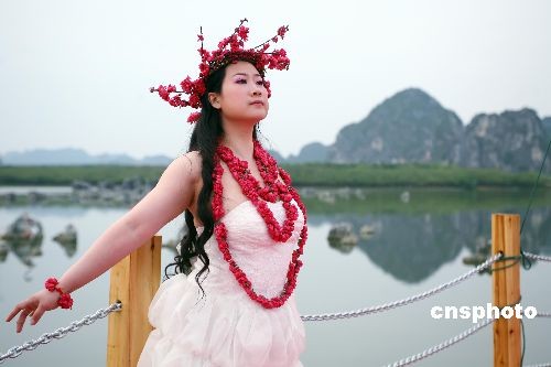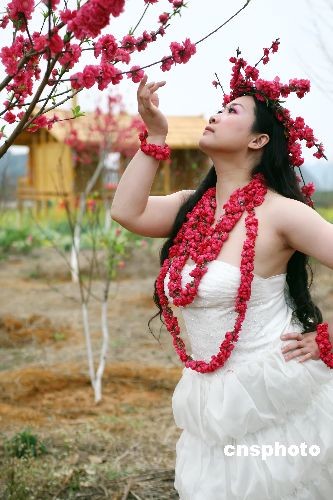 2009年2月,南寧花花大世界首屆桃花節(jié)邀請芙蓉姐姐參加演出,芙蓉姐姐化身“桃花仙子”拍攝唯美寫真。中新社發(fā) 駱文剛 攝