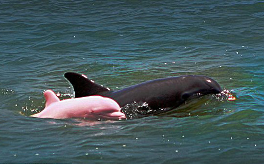 中新網(wǎng)3月3日電 據(jù)英國媒體報道,近日有人拍攝到了一組罕見的粉紅色海豚在水中嬉戲的畫面。拍攝地點是在美國路易斯安那州的加爾卡修湖,拍攝者是當(dāng)?shù)氐囊幻L,他說這只粉紅色的小寬吻海豚甚至還擁有淡紅色的眼睛。這只海豚也可能是世界上唯一一只粉紅色的寬吻海豚。