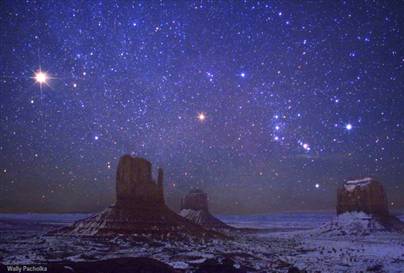 圖片中顯示的美國猶他州和亞利桑那州邊境上空的美麗夜景,明亮的星星照亮了整個夜空,給荒蕪的山谷蒙上了一層神秘的浪漫色彩。目前,國際天文學聯(lián)合會正在聯(lián)合多個組織,如“捍衛(wèi)夜間星光”、“國際暗夜周”、“國際路邊天文夜”、“天文學家無國界”以及“夜間世界”等,共同在這一地區(qū)拍攝各種極具啟發(fā)性夜色照片。上述組織向參加攝影師提供的幫助包括膠片、主題景點的描述、相關歷史、文化或者環(huán)境方面的介紹,同時還攝影師們灌輸環(huán)保理念,以及相關的類似于和平、生態(tài)和光污染等全球性問題。