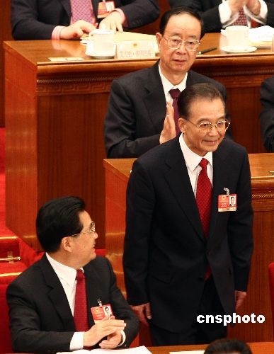 3月5日上午,十一屆全國人大二次會議在北京人民大會堂開幕,國務院總理溫家寶在作完《政府工作報告》后,向參會代表鞠躬致謝。 中新社發(fā) 杜洋 攝