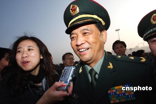 3月5日,第十一屆全國(guó)人大二次會(huì)議開(kāi)幕會(huì)在北京人民大會(huì)堂隆重舉行。圖為解放軍代表舒玉泰在會(huì)前接受記者采訪。 中新社發(fā) 李松 攝