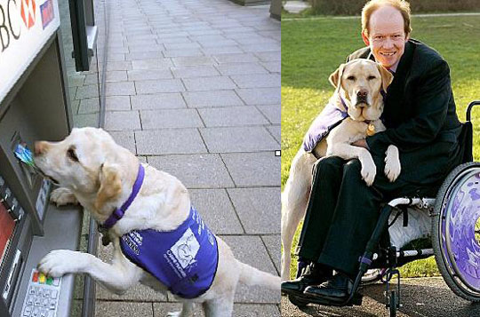 拉布拉多犬車禍救主人 會用ATM機。據(jù)英國媒體3月14日的報道,在英國漢普郡,前皇家海軍官員艾倫□帕頓同一只拉布拉多犬生活了近12年。這只拉布拉多犬不僅在一場車禍中挽救了主人帕頓的性命,而且還是一位幫他做家務(wù)的好手。據(jù)悉,這只拉布拉多犬名叫昂德(Endal)。在日常生活中,它會認真幫助主人做家務(wù),如清空洗衣機中的衣服和前往商店購物。在主人的調(diào)教下,拉布拉多犬昂德還會熟練操作自動取款機取出固定數(shù)額的錢,郵寄信件,以及遞送手機。