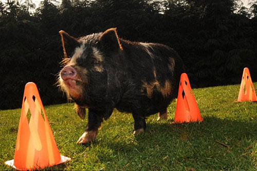 現(xiàn)在“蘇”已學(xué)會(huì)按照指令與人握手,通過(guò)隧道、在圓錐體周?chē)@行,爬上坡道,甚至能完成從一數(shù)到八的數(shù)數(shù)!疤K”的主人溫迪-斯科達(dá)摩里稱(chēng),“蘇”很有天賦。她相信,“蘇”不僅能在靈活性測(cè)試中擊敗犬類(lèi),而且能像一部電影中的明星豬那樣學(xué)會(huì)如何管理羊群。