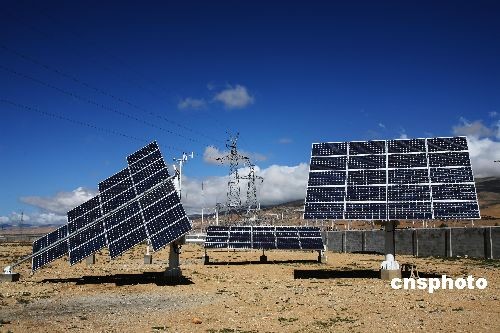 3月26日消息,隨著世界光伏產(chǎn)業(yè)的迅速發(fā)展,在空曠地區(qū)建設(shè)大規(guī)模光伏電站越來越受到人們的矚目。羊八井光伏電站就是我國第一座與高壓電網(wǎng)并聯(lián)運行的光伏電站,發(fā)出的電能并入藏中電網(wǎng),供給拉薩市及周邊地區(qū)使用。經(jīng)過一年的實際運行計量表明該電站年發(fā)電量為18.3萬度左右,可以滿足約150戶居民的日常用電需求,每年可以節(jié)約75噸標(biāo)準(zhǔn)煤,減排二氧化碳275噸。羊八井100Kwp光伏示范電站在國內(nèi)首次采用直接并入10kv高壓電網(wǎng)的技術(shù)方案,在不影響原有電網(wǎng)的結(jié)構(gòu)和安全穩(wěn)定的情況下,為進一步在西藏地區(qū)推廣太陽能并網(wǎng)發(fā)電做出了示范。中新社發(fā) 扎西朗杰 攝