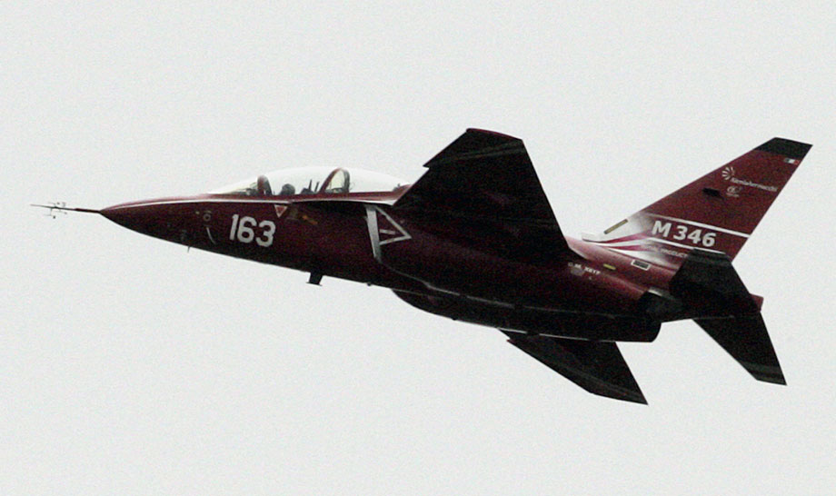 圖為意大利M-346戰(zhàn)斗機進行飛行表演。