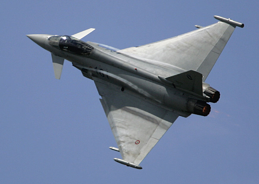 圖為歐洲臺(tái)風(fēng)戰(zhàn)斗機(jī)進(jìn)行飛行表演。