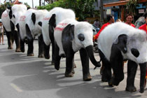 據(jù)英國(guó)媒體報(bào)道,近日,泰國(guó)因一只剛出生的熊貓陷入熱潮,泰國(guó)還準(zhǔn)備向公眾征集熊貓幼崽的名字。幾只大象也“妝扮”成熊貓的模樣,借此吸引人們的關(guān)注。