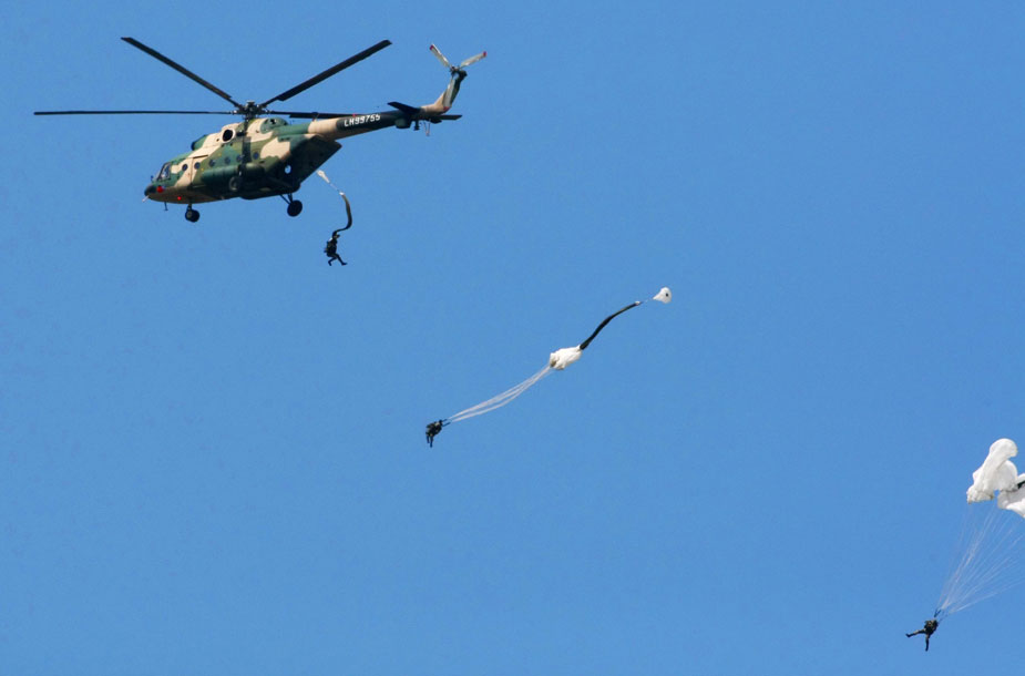 中國、俄羅斯兩軍總參謀長,7月23日上午到沈陽軍區(qū)洮南合同戰(zhàn)術(shù)訓(xùn)練基地,觀看“和平使命2009”聯(lián)合反恐軍事演習(xí)。雙方以陸軍和空軍為主,中方參演部隊(duì)包括1個陸軍戰(zhàn)斗群和1個空軍戰(zhàn)斗群。俄方參演兵力包括1個陸軍加強(qiáng)摩步營、1個空降突擊連和部分空軍兵力,雙方投入兵力兩千多人。中新社發(fā) 宋吉河 攝