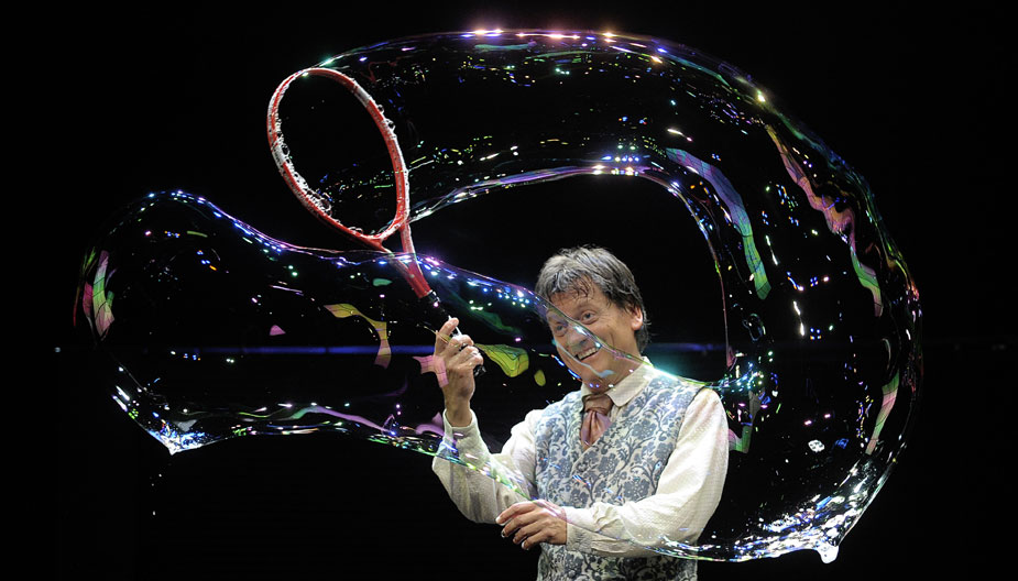 當(dāng)?shù)貢r間7月23日,西班牙國際肥皂泡藝術(shù)家皮蓬-玻爾在巴塞羅那進(jìn)行肥皂泡藝術(shù)表演。