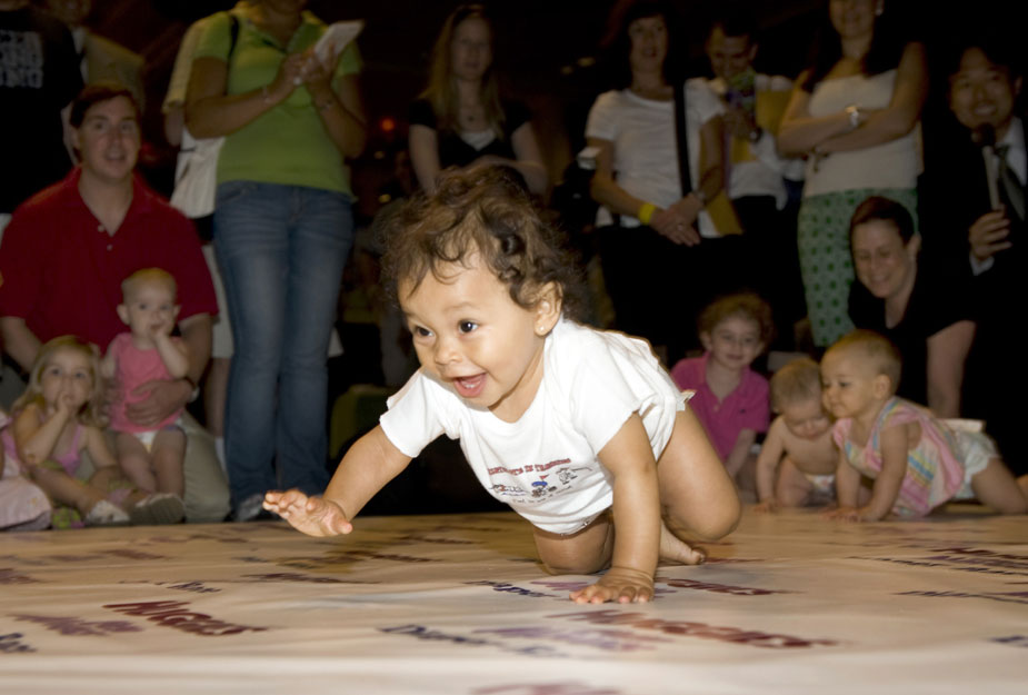 當?shù)貢r間7月24日,美國紐約舉行了一場趣味橫生的小寶寶爬行大賽,獲得冠軍的小寶寶贏得了一年免費的紙尿褲。