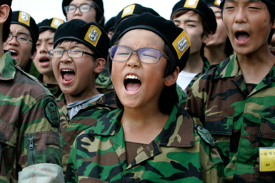7月29日,韓國數(shù)百名學生和市民在位于首爾的美軍基地參加軍訓夏令營,此次軍訓夏令營共為期四天。