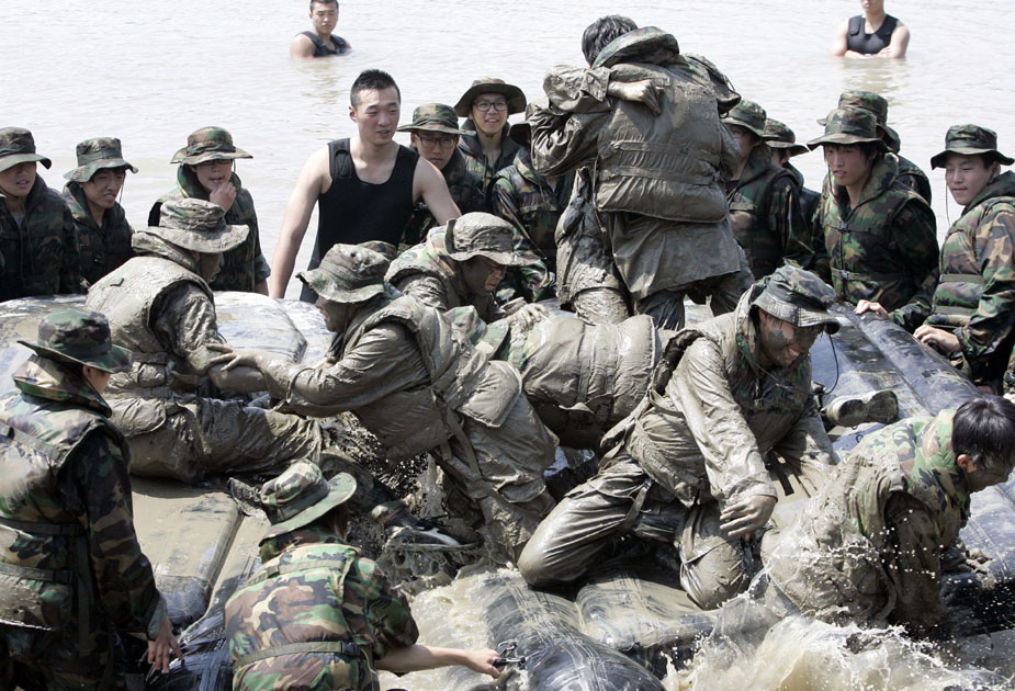 高清圖:韓國中學(xué)生殘酷的泥地軍訓(xùn)