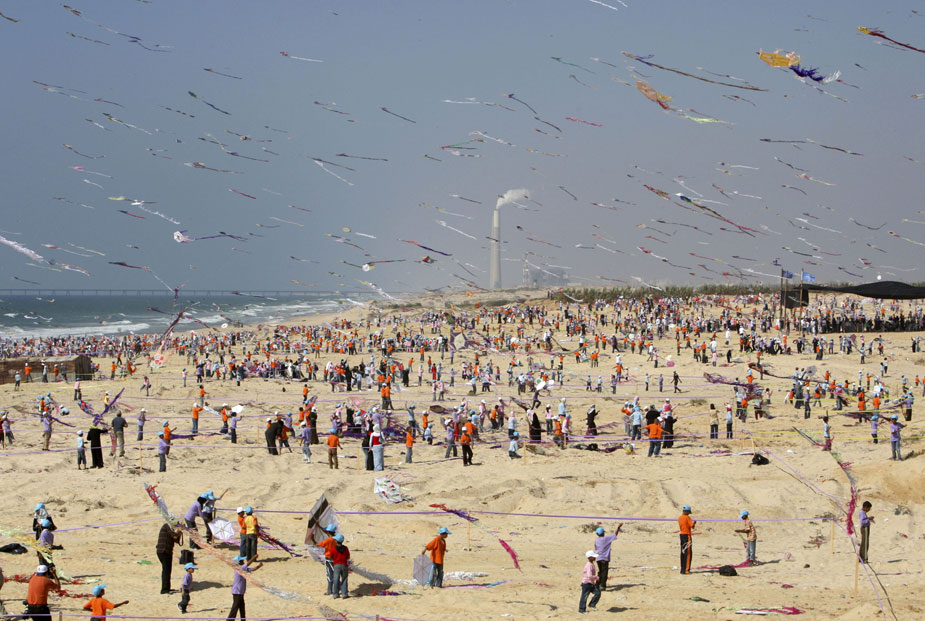 7月30日,加沙地帶的6000名巴勒斯坦兒童共同在加沙北部的海灘上放飛了3000多只五顏六色的風箏,打破了同時放飛最多只風箏的吉尼斯世界紀錄。