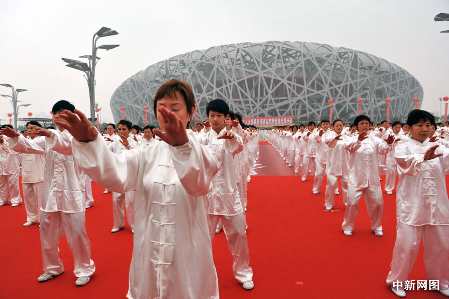 8月8日,全國首個“全民健身日”北京主會場啟動儀式上,三萬多群眾進行太極拳展示活動,在世界吉尼斯總部認(rèn)證官員的見證下成功打破世界紀(jì)錄。中新網(wǎng)記者 金碩 攝