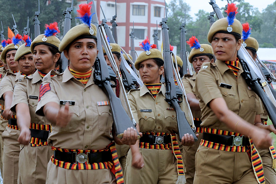 圖為慶祝獨立62周年閱兵式上的印度女兵。