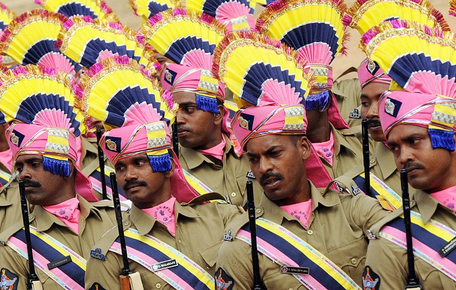 圖為慶祝獨立62周年閱兵式上的印度士兵。