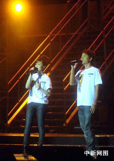 圖為李克勤與謝安琪現(xiàn)場演出。