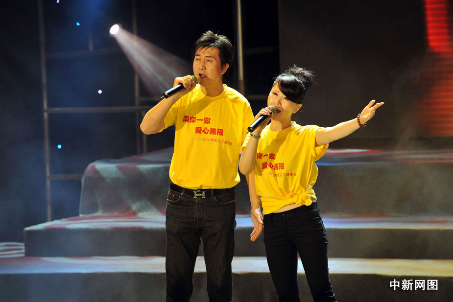 8月22日晚,北京舉行“兩岸一家 愛心無限”為臺灣同胞賑災(zāi)義演晚會,大陸和臺灣演藝界明星登臺為臺灣災(zāi)區(qū)同胞共獻(xiàn)愛心,晚會臨近結(jié)束時共收到各界捐款3000多萬元。中新網(wǎng)記者 金碩 攝