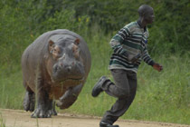 大河馬遭擾怒追看守人