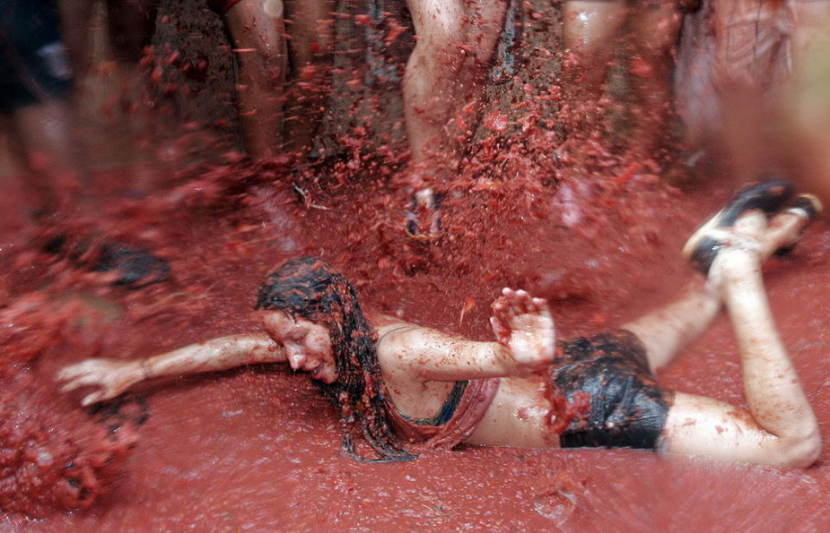 8月26日,西班牙東南部小鎮(zhèn)Bunol當日迎來傳統(tǒng)的西紅柿節(jié)。大約4萬名狂歡者在1小時內扔掉了11萬公斤西紅柿。來源:中國新聞網(wǎng)