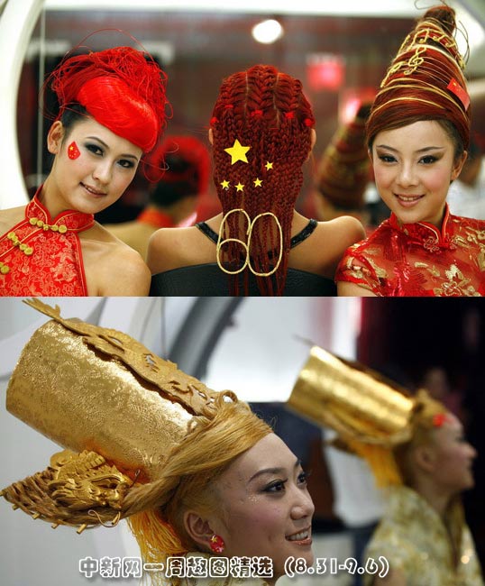9月2日,昆明發(fā)型設(shè)計師們推出多款“國慶”發(fā)型,將黃色五角星、紅旗等元素應(yīng)用在多款不同的發(fā)型上,每一款發(fā)型又都獨具特色。圖片來源:CFP