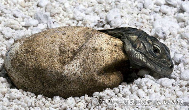9月1日,美國圣迭戈動物園兩只小藍鬣蜥破殼而出。藍鬣蜥是世界最瀕危的物種之一。圖片來源:中國新聞網(wǎng)