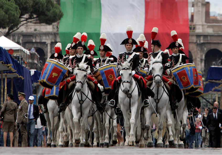 2009年6月2日,意大利首都羅馬舉行一年一度的閱兵式,慶祝意大利共和國(guó)成立63周年。閱兵儀式按照慣例在羅馬市中心帝國(guó)廣場(chǎng)大道上舉行,來自意大利三軍各兵種、憲兵和警察部隊(duì)、各軍事院校的6400名官兵依次列隊(duì)接受了檢閱。