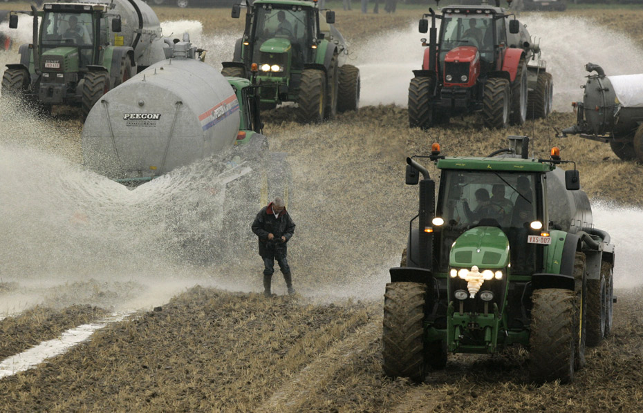 16日,比利時奶農(nóng)向地里傾倒了3百萬升鮮牛奶做“農(nóng)肥”,抗議奶價暴跌。奶農(nóng)們認(rèn)為,提高牛奶生產(chǎn)配額造成歐盟市場上奶制品供大于求,進(jìn)而引發(fā)價格暴跌。來源:中國新聞網(wǎng)