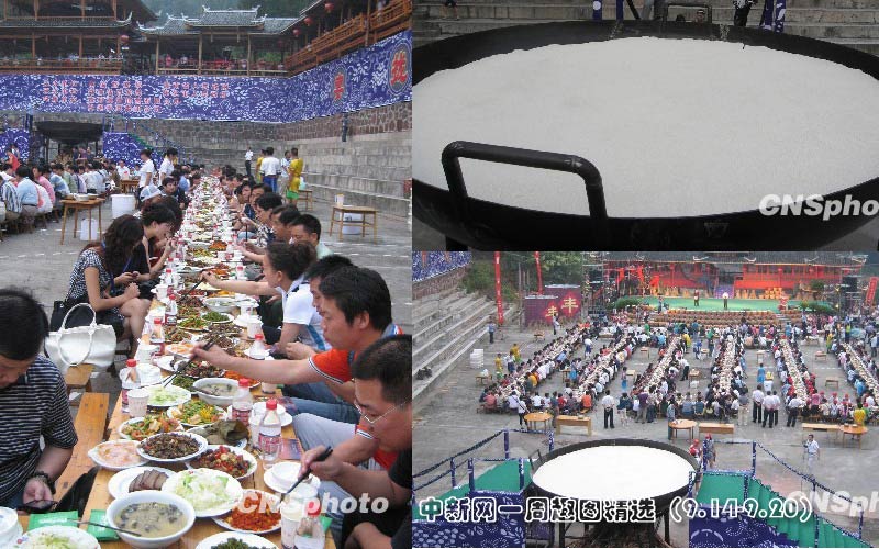 9月14日,萬人參與、規(guī)模巨大的“天下第一合攏宴”在湖南懷化中國侗文化城等5個(gè)宴會(huì)場快樂開餐。圖片來源:中國新聞網(wǎng)