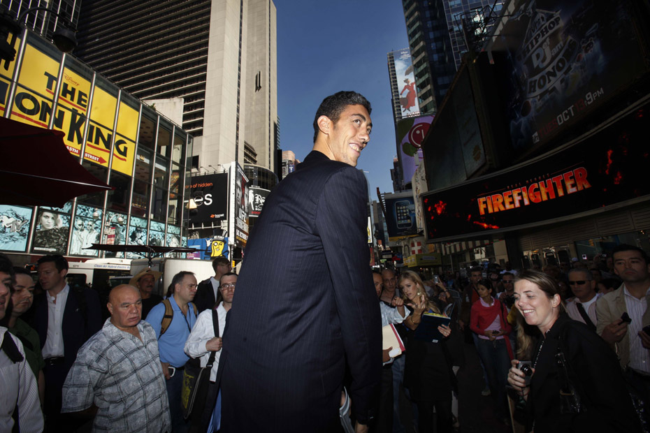 9月21日,身高2.465米的土耳其人柯森在美國紐約拿到了“世界第一高人”的吉尼斯世界紀(jì)錄證書。這項(xiàng)紀(jì)錄的上一位保持者是身高2.36米中國人鮑喜順。來源:中國新聞網(wǎng)