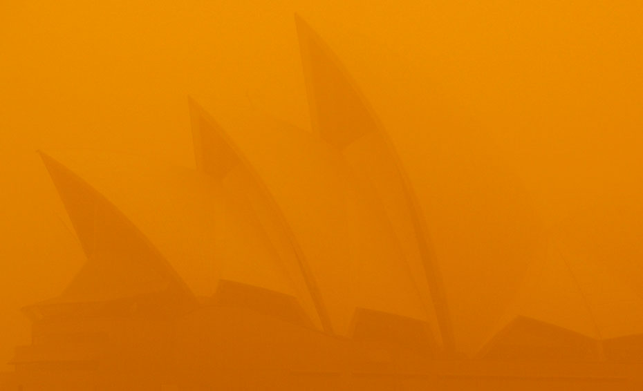 澳大利亞悉尼23日出現(xiàn)罕見(jiàn)的沙塵暴,加上風(fēng)速每小時(shí)上百公里的強(qiáng)風(fēng)吹襲,全城籠罩在一片橘紅色的塵霧中,由于能見(jiàn)度相當(dāng)?shù)停w機(jī)和渡輪暫時(shí)停飛或停駛。