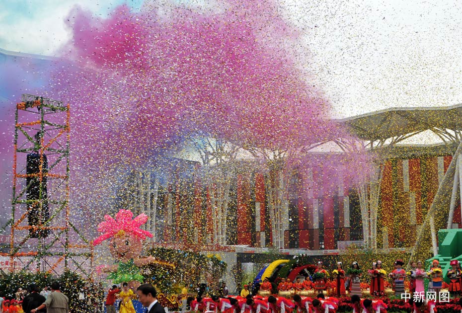 9月26日,第七屆中國花卉博覽會(huì)在北京順義主場(chǎng)館廣場(chǎng)隆重開幕,現(xiàn)場(chǎng)彩帶漫天飛舞“花雨”從天而降,以及異彩紛呈的表演成為一道豐盛的視覺大餐。中新網(wǎng)記者 金碩 攝
