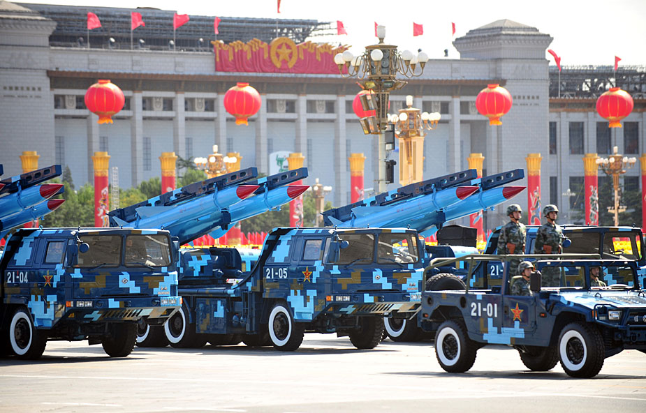 2009年10月1日,首都各界慶祝中華人民共和國成立60周年大會在北京天安門廣場隆重舉行。這是紅-12地空導(dǎo)彈方隊(duì)正在通過天安門廣場。