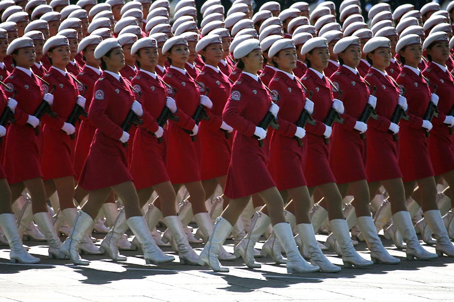 2009年10月1日,北京,首都各界慶祝中華人民共和國成立60周年大會在北京舉行。圖為閱兵式上英姿颯爽的女民兵。