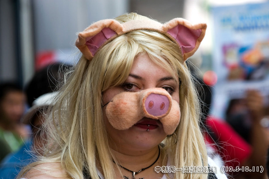 10月4日,在墨西哥首都墨西哥城,參加世界動物日活動的人們頭帶面具,手舉圖片,呼吁人們關注動物權(quán)益。來源:中國新聞網(wǎng)