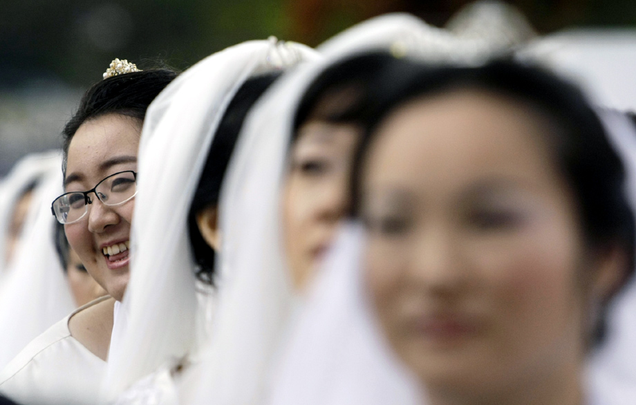 周三(10月14日),來自世界各地約4萬人在韓國漢城以南的日月潭大學參加集體婚禮,并成為韓國10年來規(guī)模最大的集體婚禮。圖片來源:中國新聞網(wǎng)