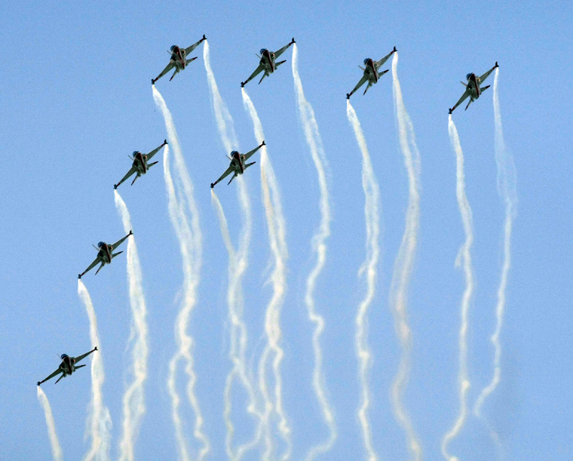 10月20日,韓國黑鷹特技飛行表演隊(duì)在2009首爾國際航空航天與國防展上進(jìn)行精彩的特技飛行表演。