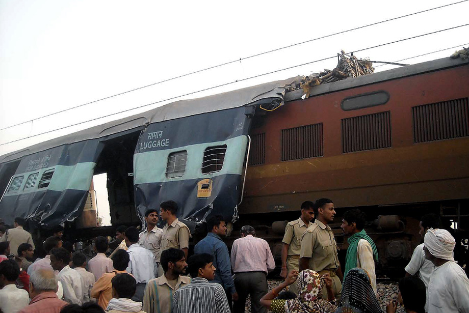 印度北方邦21日凌晨發(fā)生兩列火車相撞事故, 一輛來自西南部果阿的快運(yùn)列車在馬圖拉附近與一列來自西部拉賈斯坦邦梅瓦爾的快運(yùn)列車相撞,造成15人死亡。來源:中國新聞網(wǎng)